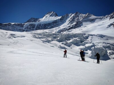 Dieses Jahr liegt besonders viel Schnee – die Gletscher sind bestens eingeschneit! Es warten versteckte Abfahrten, anstrengende Aufstiege und atemberaubende Couloirs auf dich.