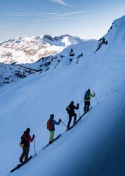 Geht’s richtig los mit den Tourenskis ins Gelände wegg von den Liften, durch spannenden Couloirs odar sogar auf den Gletscher?
